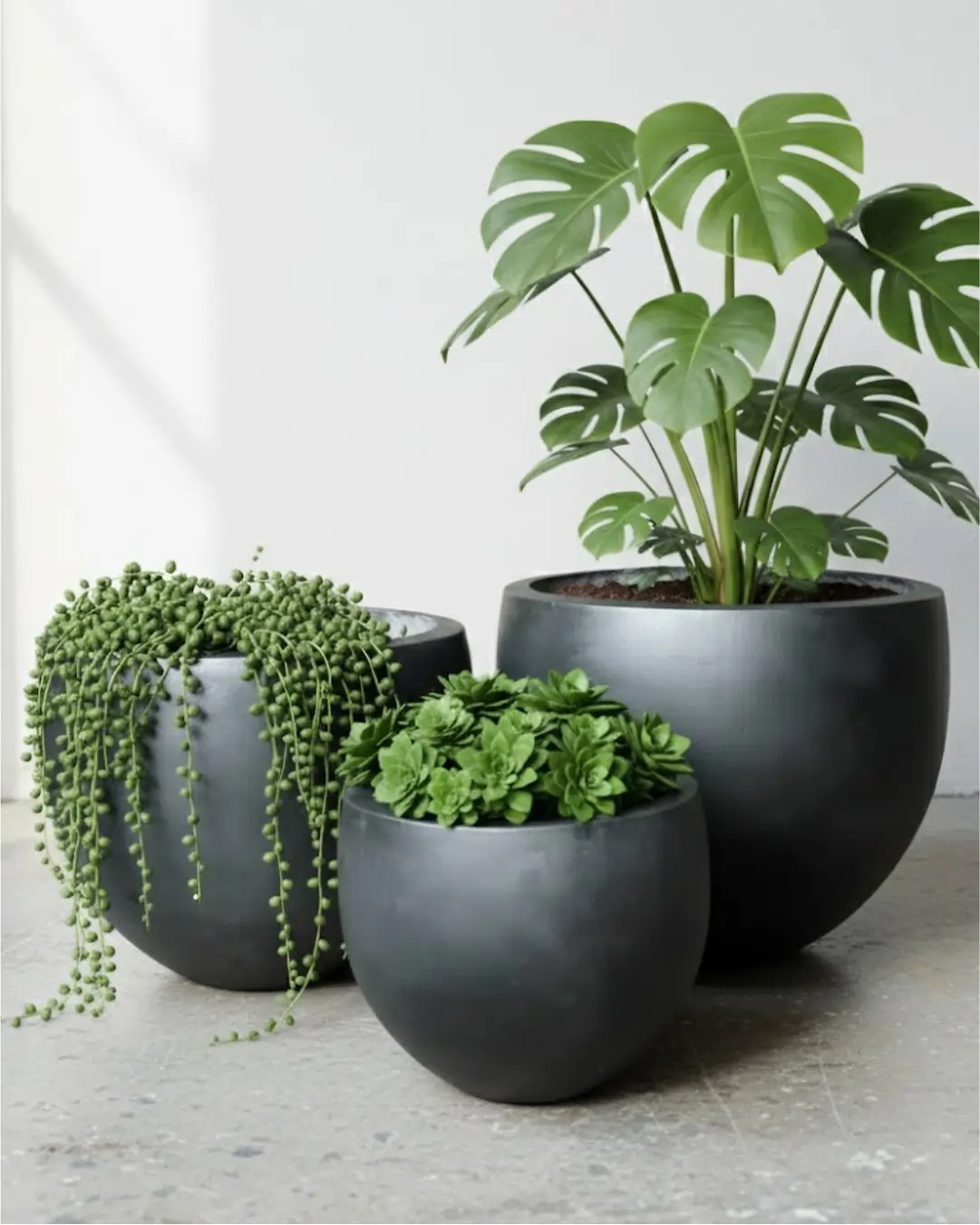 A great bulbous contemporary shape which suits a variety of plantings.