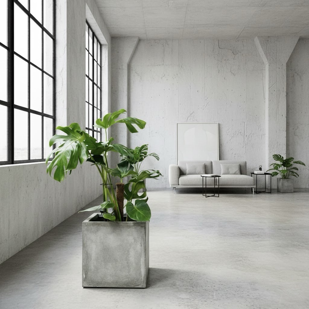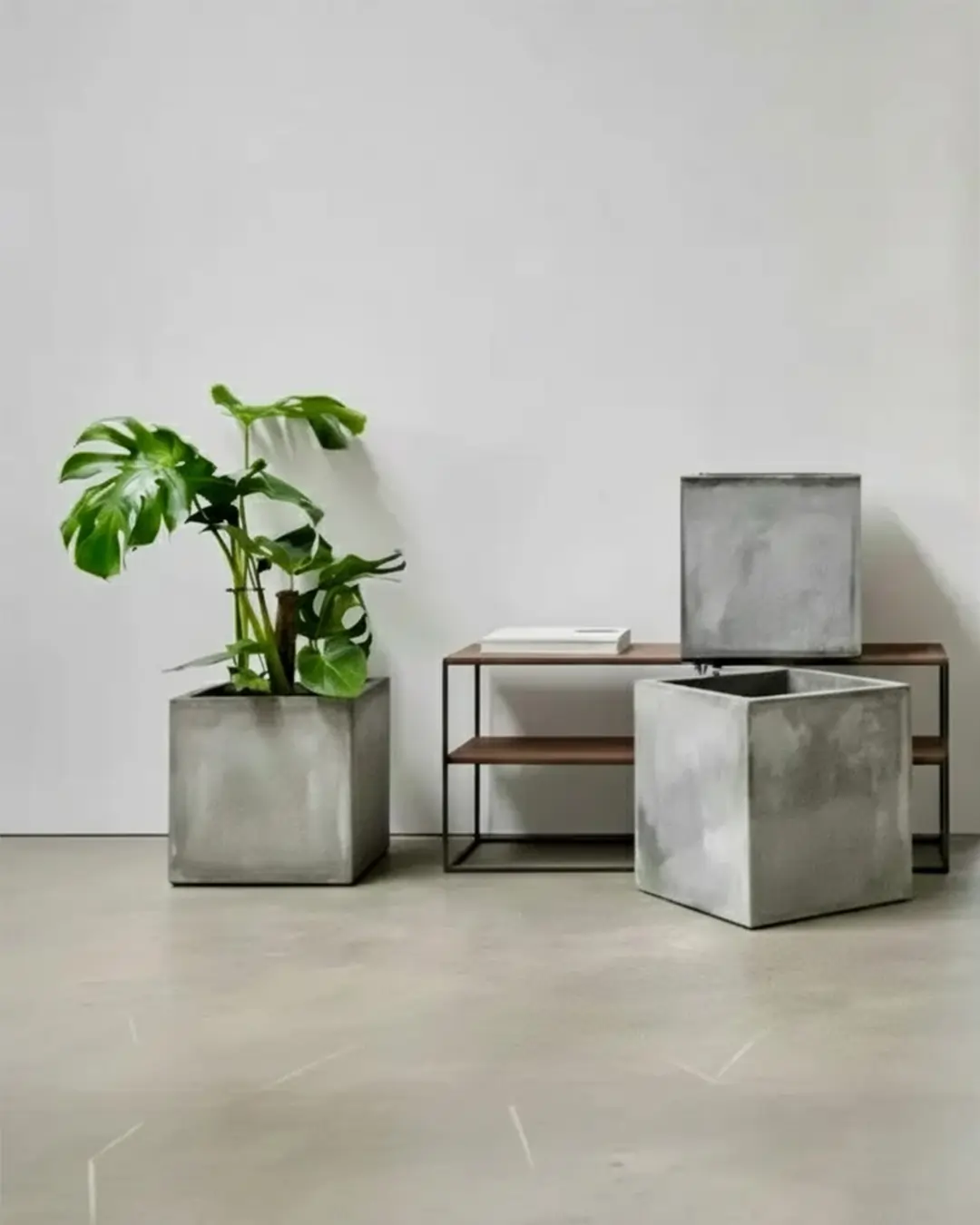 The size 1 QuarterLite Squares can comfortably accommodate a 30cm standard nursery pot. Predominantly available in CEMENT GREY, but we do have a few CHARCOAL colored cubes available also.